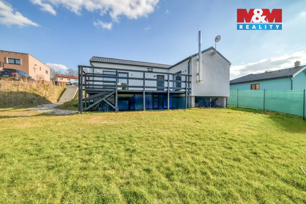 Hledáte bydlení v menším rodinném domě s prostornou zahradou? Nabízíme novostavbu (kolaudace 2022) o dispozici 3+kk, která se nachází v obci Šabina, cca 7 km od Sokolova. Jedná se o nepodsklepenou dřevostavbu s jedním nadzemním podlažím, půdorysu tvaru „L“, s otevřenou terasou o výměře 32 m², ze které je přímý vstup do domu. Dům o podlahové ploše 54,74 m² nabízí obývací pokoj s kuchyňským koutem, ložnici, samostatný pokoj a koupelnu s WC. Vytápění je řešeno kombinací elektrického podlahového vytápění a krbových kamen jako doplňkového zdroje. Komfort zvyšuje klimatizační jednotka a rekuperační jednotky v pokojích. Ohřev vody zajišťuje elektrický bojler. Na jižní straně střechy je instalován fotovoltaický systém. Z ložnice a obývací části je přímý vstup přes velká posuvná okna na terasu, ze které se nabízí krásný výhled do okolí. Parkování cca pro 3 auta je možný na zpevněné ploše. Pozemek o výměře 967 m² je mírně svažitý a má pravidelný obdélníkový tvar. V případě zájmu nás kontaktujte.