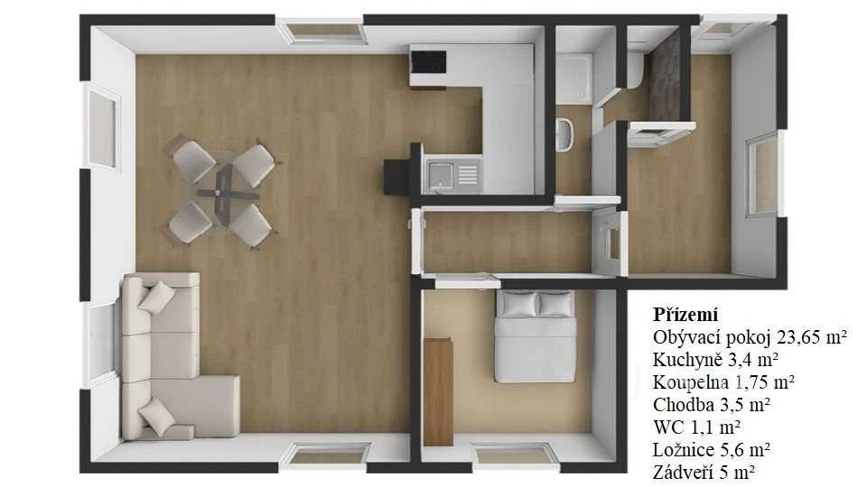 | Zdroj topení | Tepelné čerpadlo, Krbová kamna |