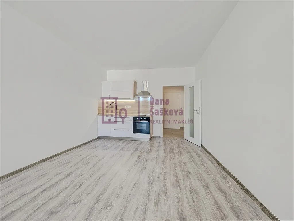 Dispozice 1+kk nabízí vstupní chodbu, koupelnu s vanou a toaletou, pokoj s kuchyňským koutem a vstupem na sdílenou terasu o výměře 7 m2. Byt orientovaný na severozápad je vybavený kuchyňskou linkou s vestavěnou elektrickou troubou, varnou deskou a digestoří.
