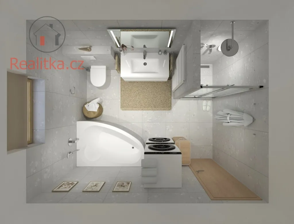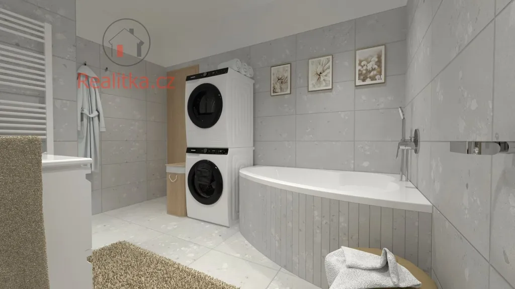 • 1. patro: Nabízí tři samostatné pokoje, prostornou šatnu a nadstandartní koupelnu s vanou, sprchovým koutem, dvoj-umyvadlem a tepelným žebříkem.