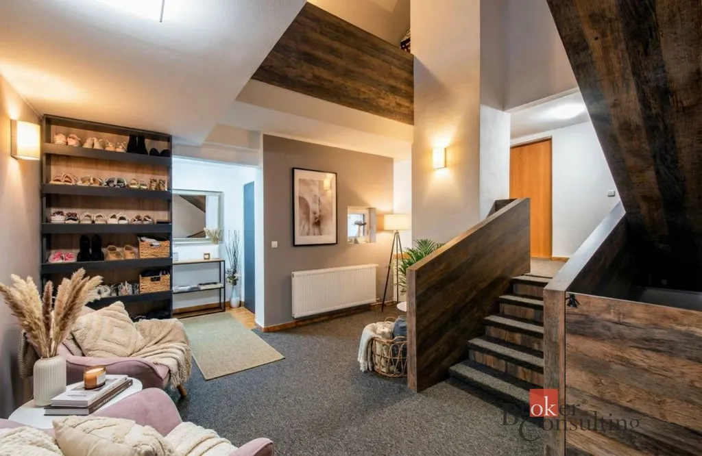 Dům je vhodný jak pro rodinné bydlení, tak jako obchodní příležitost – například k rozšíření obytné části nebo výstavbě další jednotky. V zadní části zahrady se nachází branka k řece.