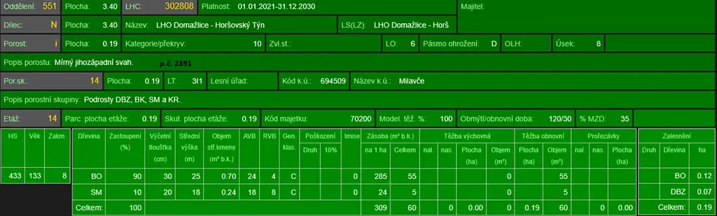 Prodej lesa, Milavče, 5759 m2 (ID: 2012175)