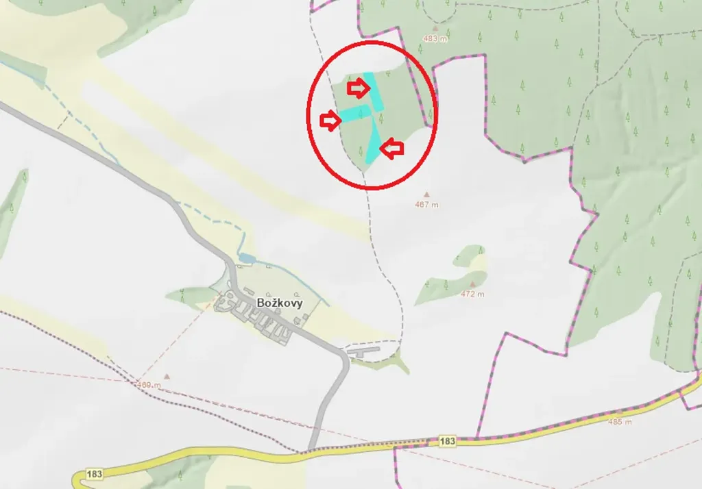- p.č. 2391 vedená jako lesní pozemek o celkové výměře 1 935 m2 (stáří lesa 138 let - zastoupení dřevin borovice, smrk).