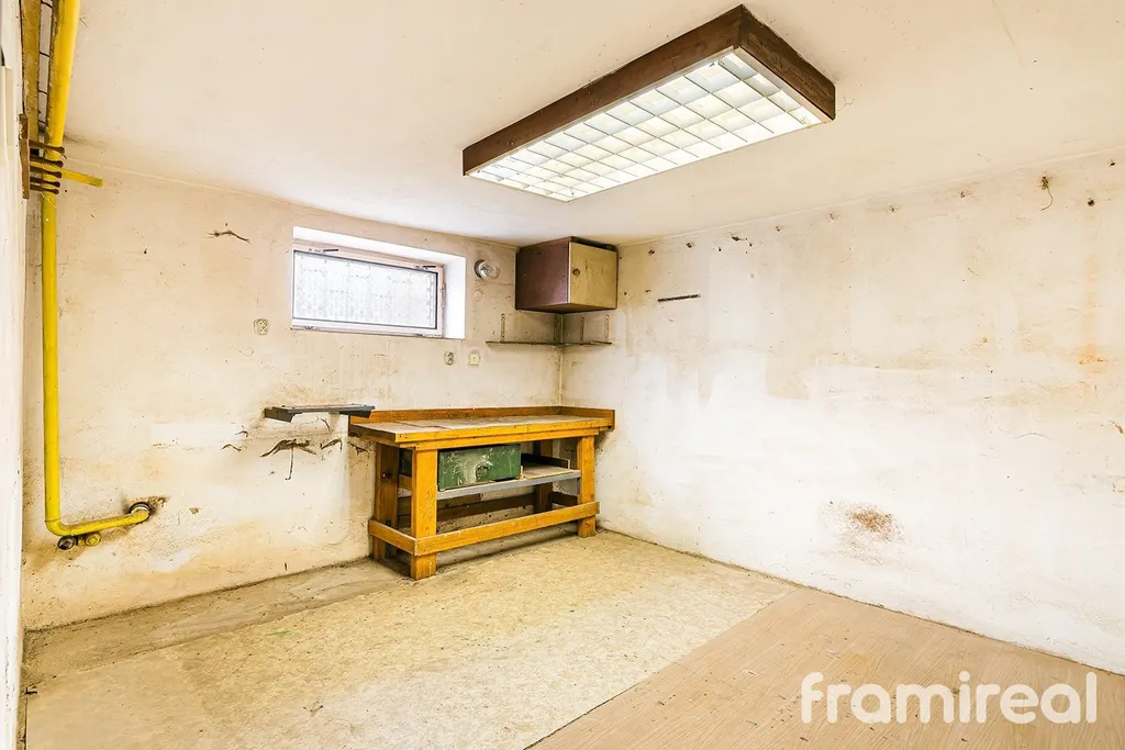 Suterén domu nabízí praktické technické zázemí – nachází se zde dvě garáže, dílna, prádelna a další skladovací prostory.