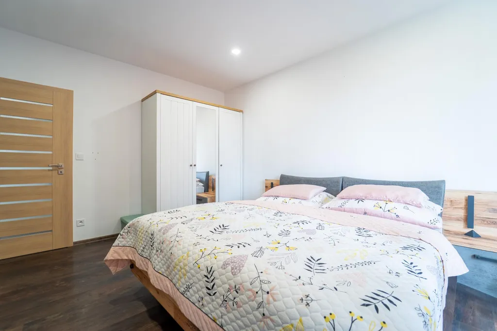 Z ložnice je vstup na lodžii 3,9 m2 orientovaný na klidnou stranu, ideální pro ranní kávu či večerní relaxaci. Pohodlně se zde vejde menší stolek s posezením. Další pokoj může sloužit jako dětský pokoj nebo pracovna.