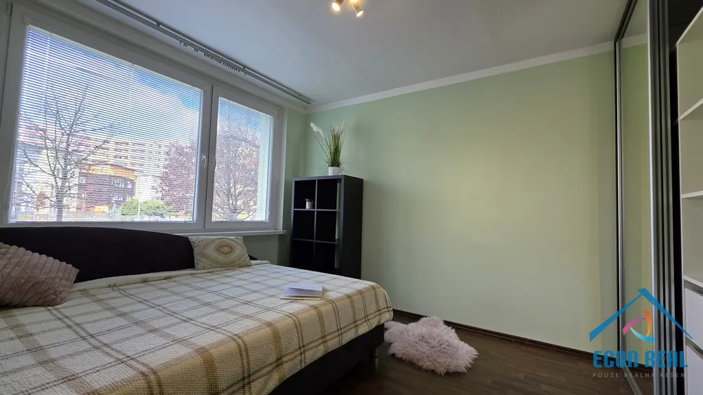 Obě ložnice jsou neprůchozí a jejich okna směřují do klidného, zeleného vnitrobloku. Kuchyň je zařízena kuchyňskou linkou v moderním lesklém designu s vestavěnými spotřebiči (el. trouba, nová varná plynová deska, myčka), dále je k dispozici volně stojící lednice s mrazákem.