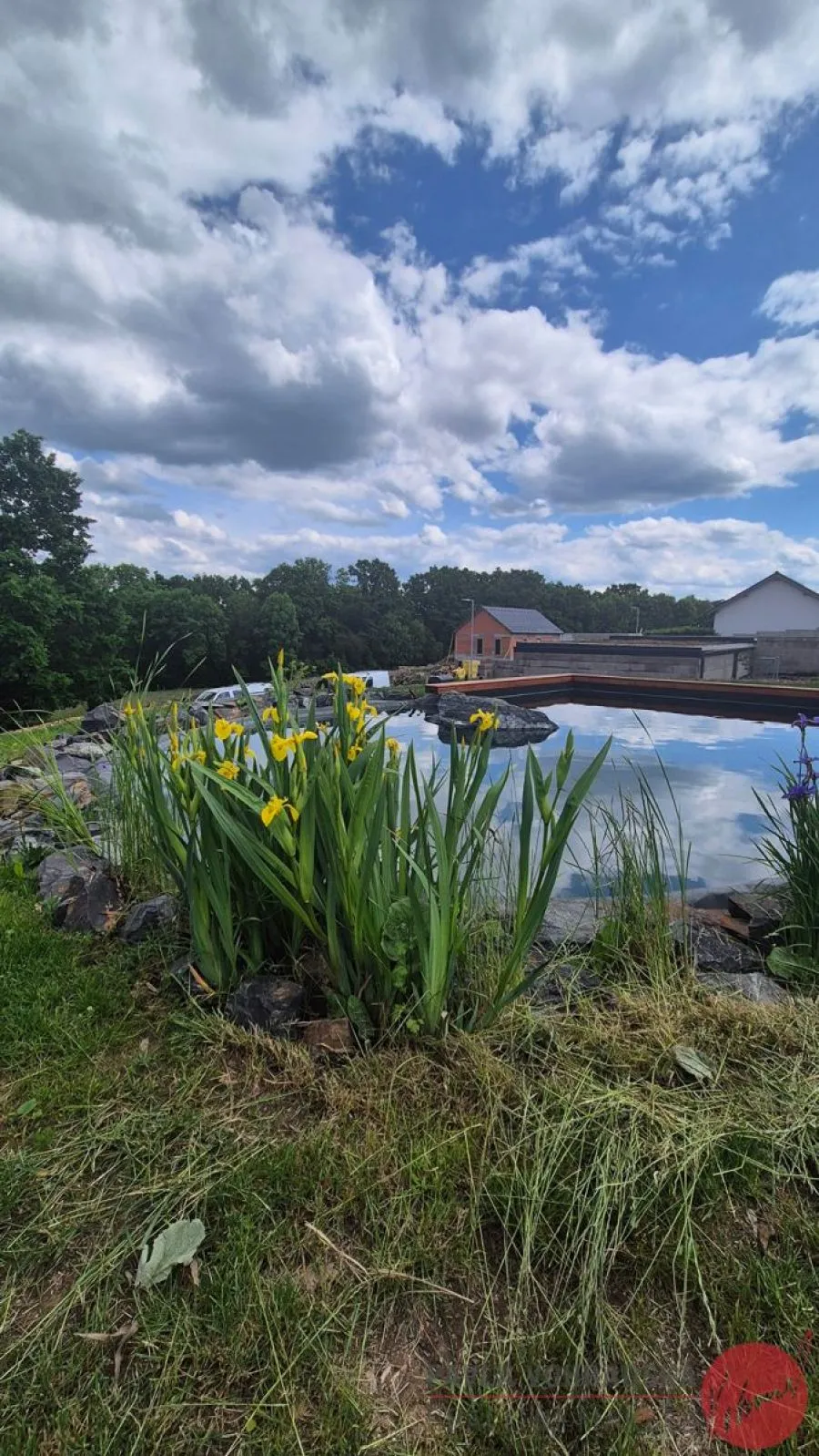Koupací jezírko se solární sprchou a technickým zázemím