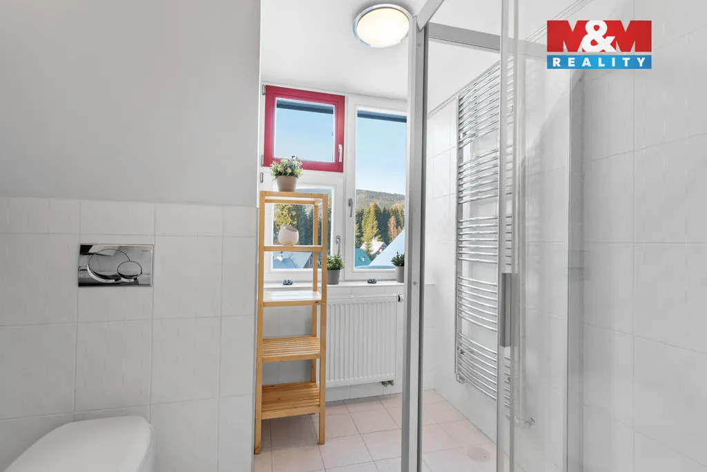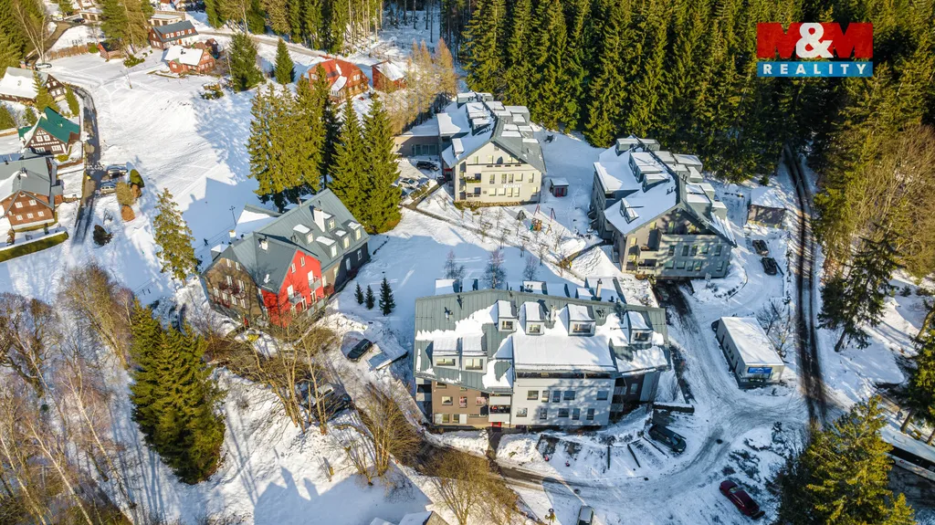 Nabízíme k prodeji krásný prakticky řešený podkrovní byt 2+kk o celkové rozloze 56 m2 + parkovací stání v klidné části města Harrachov. Byt je velmi vkusně zařízený, plně vybavený, poslední roky téměř nevyužívaný. Dispozičně je šikovně řešený tak, aby vznikly 2 samostatné ložnice, ale zároveň byl zachován obývací pokoj s kuchyňským koutem. V bytě je dále koupelna (s podlahovým vytápěním) se sprchovým koutem a WC a komora přístupná z chodby. Nemovitost se nachází v uzavřeném bytovém resortu Resident Harrachov, kde je též i parkovací stání patřící k bytu vymezené samostatným parcelním číslem. K bytu dále patří sklep v suterénu domu. Samotná nemovitost je zděná, ve velmi dobré kondici s vlastní kotelnou. Celý komplex se nachází v klidné části města přitom s výbornou dostupností do centra. Lyžařské středisko je cca cca 1,5 km, bobová dráha a lanové centrum 300m. Pokud hledáte útulný plně vybavený apartmán na klidném místě, ale v srdci Krkonoš, pak je pro Vás tato nemovitost ideální.