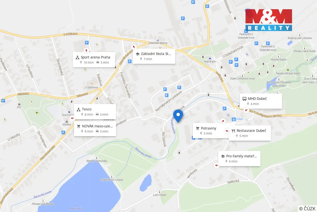 Nabízíme k prodeji rodinný dům v klidné části Prahy 10 – Dubeč, situovaný na pozemku o celkové výměře 487 m². Nemovitost je vhodná jak pro vícegenerační bydlení, tak i pro rozdělení na dvě samostatné jednotky. V přízemí domu se nacházejí dvě kuchyně, dvě koupelny s toaletou a tři obytné pokoje. Z obou stran domu vedou samostatná schodiště do podkroví, kde jsou umístěny další tři ložnice. Vytápění je zajištěno plynovým kotlem nebo kotlem na dřevo. Dům je v udržovaném stavu, avšak vyžaduje částečnou rekonstrukci. Součástí nabídky je zahrada se skleníkem, ideální pro relaxaci i pěstování. Další pozemek o výměře 253 m² je dlouhodobě v nájmu od obce s možností odkoupení a rozšiřuje využití venkovního prostoru. Parkování je zajištěno přímo na pozemku. Městská část Dubeč nabízí klidné bydlení na okraji Prahy s kompletní občanskou vybaveností, výbornou dopravní dostupnost do centra Prahy s výhodou blízkosti přírodního parku a zelených ploch. Pro více informací kontaktujte makléře.