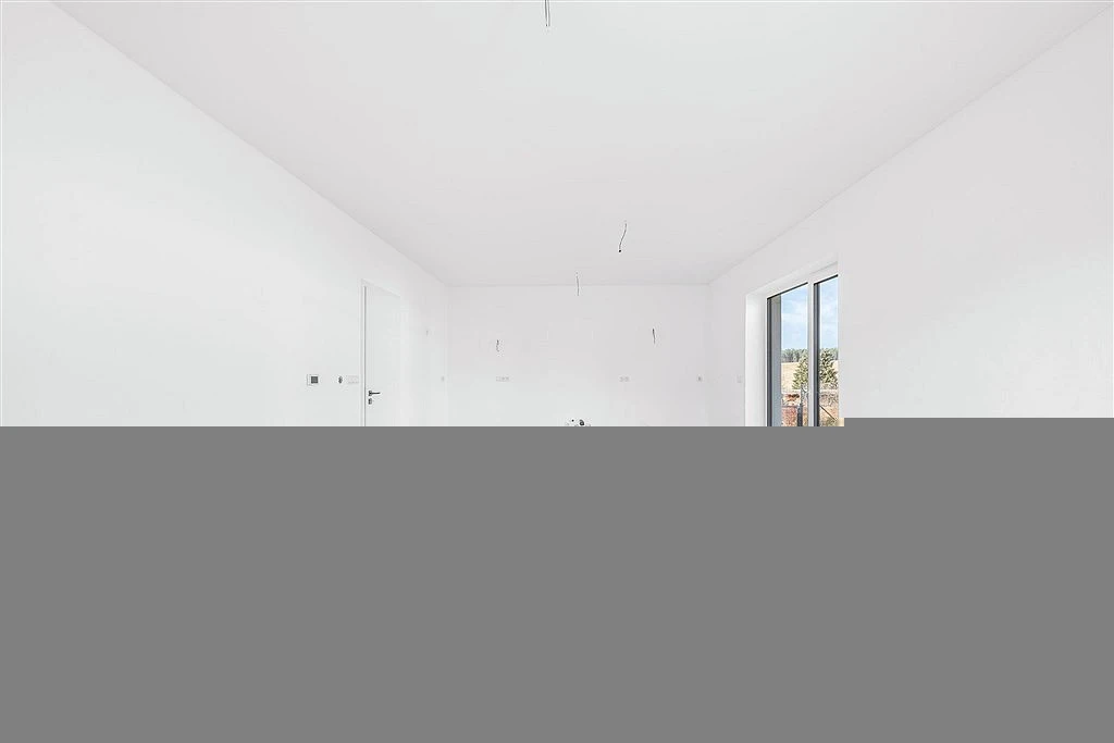 Dispozice interiéru je navržena s důrazem na funkčnost a komfort. Koupelna je vybavena moderními velkoformátovými obklady a celý dům je připraven na instalaci předokenních žaluzií či rolet.