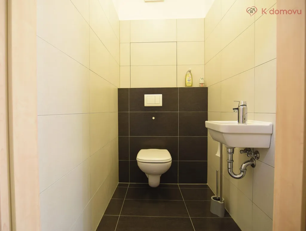 • Toaleta se závěsným WC a praktickým umyvadlem.