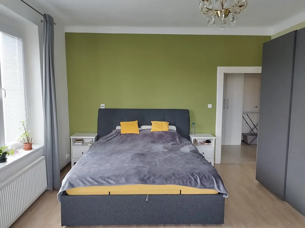 Ve výhradním zastoupení pronajmeme byt 2+1 v Praze 10 o výměře 62 m2, na Vinohradech v klidné lokalitě s výborným parkováním. Byt se nachází ve druhém patře klidného činžovního domu bez výtahu. Byt se sestává z chodby 10 m2, ložnice 13,50 m2, pokoje 21 m2, kuchyně 12,5m2 a koupelny/záchodu 5 m2. Byt je nově vymalován. V bytu jsou plastová okna s izolačními trojskly, byt je vytápěn centrálním topením s kotlem na elektřinu. Byt je vybaven kuchyňkou linkou v chodbě bytu jsou úložné prostory. Důležité – preferujeme maximálně 2 nájemce bez domácích mazlíčků.