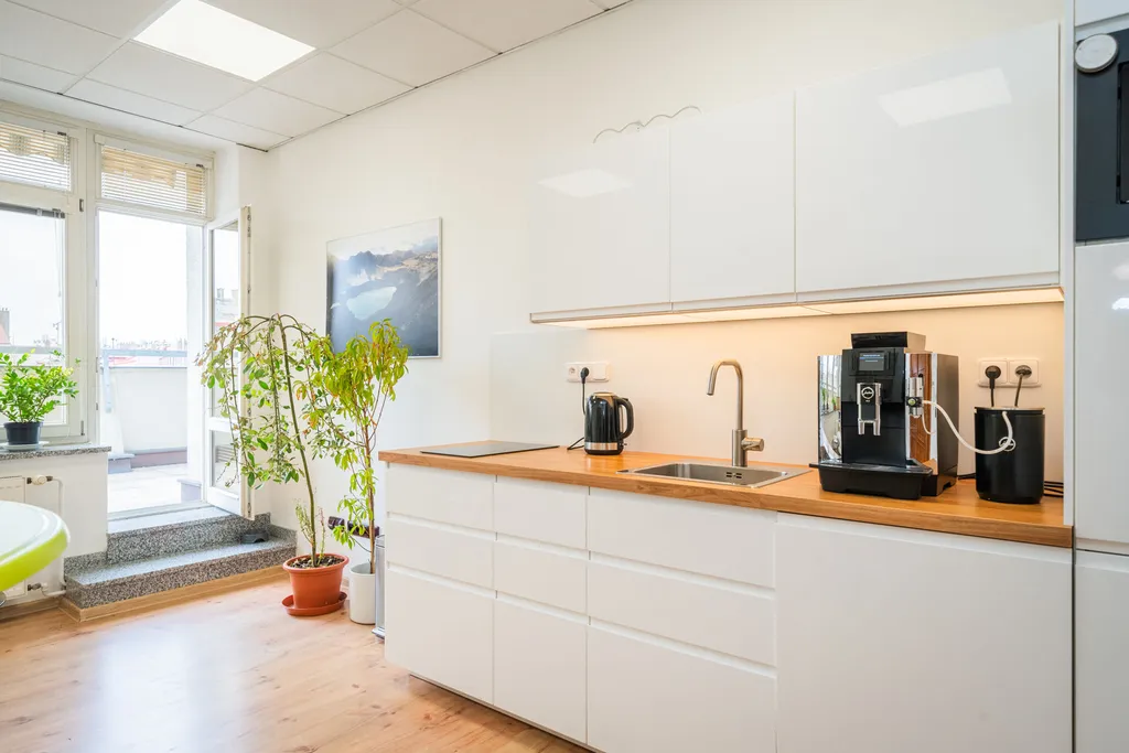 Nabízíme Vám k pronájmu atraktivní kancelář v ulici Slezská, Praha-Vinohrady. Jedná se o soukromou kancelář o výměře 21 m² s možností využití sdílených kancelářských prostor včetně prostorné terasy s krásnými výhledy na Prahu i historické budovy v okolí. Zmiňované sdílené prostory zahrnují samostatnou kuchyňku s denní místností se vstupem na terasu, zmiňovanou terasu, toalety se sprchami, což poskytuje pohodlí a plné zázemí. Kancelář má dostatek přirozeného světla a je možno využívat k jakémukoli typu administrativní činnosti. Kancelář je vybavena klimatizací, připojením na WIFI. Po dohodě je možnost pronájmu zasedací místnosti, tiskárny, učeben, laser projekce, Apple TV, pro organizování pravidelných vzdělávacích aktivit či komunitních akcí. Cena obsahuje vysokorychlostní internet a úklid společných prostor 2 x v týdnu, ale ne samotné kanceláře. Vybavení kanceláře po dohodě.
