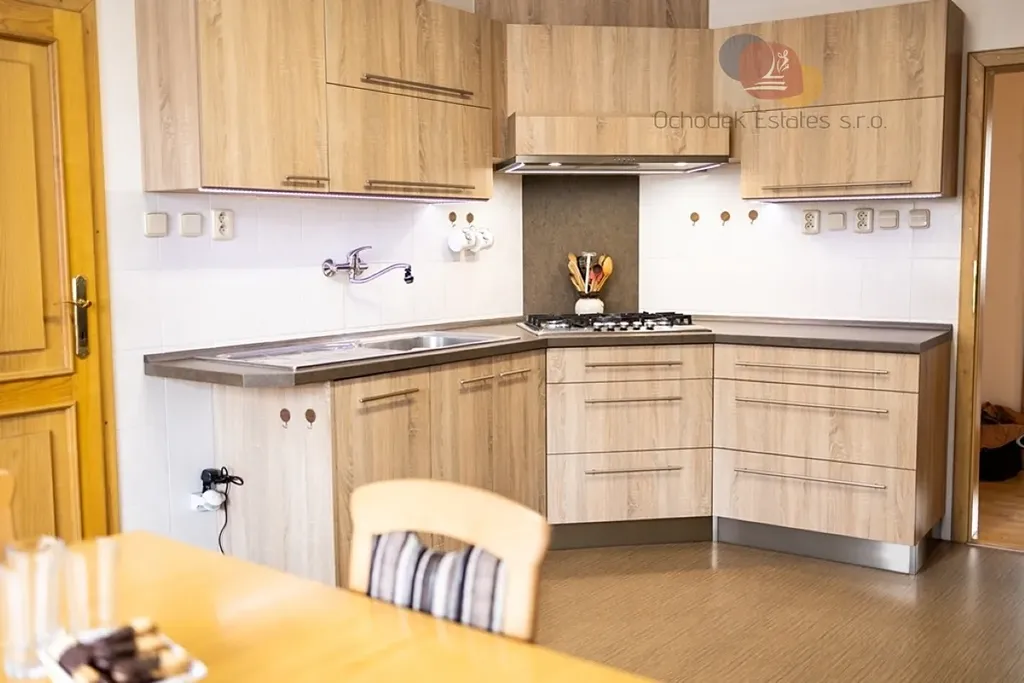 Jedná se o 6+1, kde v přízemí je komerční prostor o výměře 65m2 s výlohou a se samostatným vstupem přímo z ulice a vjezd do garáže s vchodem do obytné části. V prvním patře je prostorný obývák, kuchyň s novou kuchyňskou linkou, samostatnou spíží, pokoj pro hosty, koupelna a samostatné WC. Dále je tu vstup na zastřešenou terasu. První patro je koncipováno jako prostor pro trávení společného času s rodinou a přáteli.