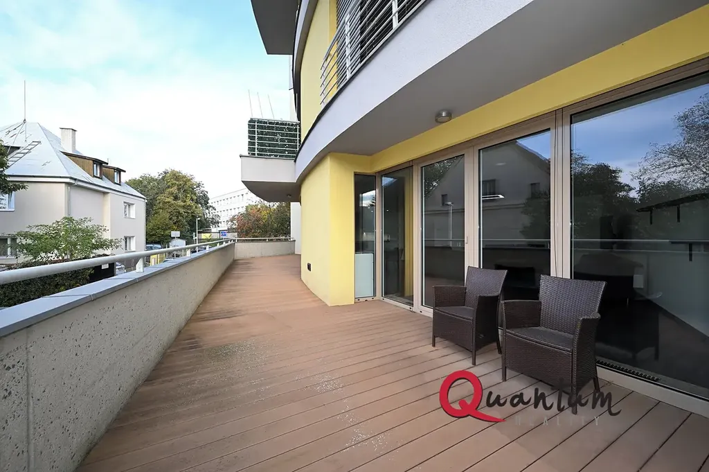 Exkluzivně nabízíme k pronájmu luxusní, nadstandardně vybavený prostorný byt 4+kk o podlahové ploše 167 m2 + velkoryse řešená terasa 53,7 m2 + balkon 2,6 m2. Byt se nachází ve zvýšeném přízemí moderní pětipodlažní budovy z r. 2010 v ulici Na Samotě, v blízkosti přírodní památky Prosecké skály.