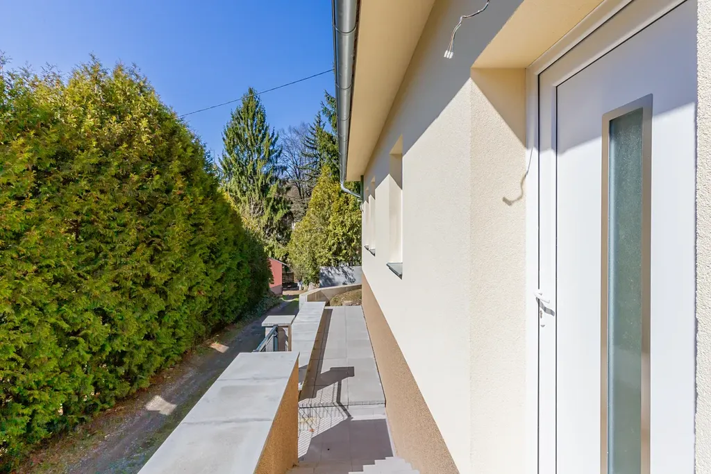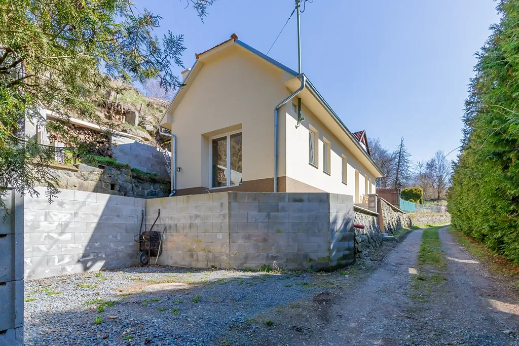 Samotný dům je po částečné rekonstrukci. Zrekonstruovaný byl celý přízemní prostor, kde se nachází dva pokoje, komora a koupelna s toaletou. Z jednoho pokoje se dá vyjít přímo do prostor, kde lze snadno zhotovit terasu. Horní patro neuvádíme do užitné plochy, ale lze v něm jednoduše vytvořit jednu nebo dvě další místnosti. Současný majitel již nechtěl dělat další úpravy proto, aby si mohl vše nový majitel dodělat dle libosti. Za domem je zahrada, které je v prudkém svahu a vyžaduje terénní úpravy. Vedle domu je prostorné parkovací stání. Voda je z vlastní study, ohřev vody a rozvod tepla je zajištěn z nového elektrické kotle. Zároveň jsou v hlavní místnosti nová kamna.