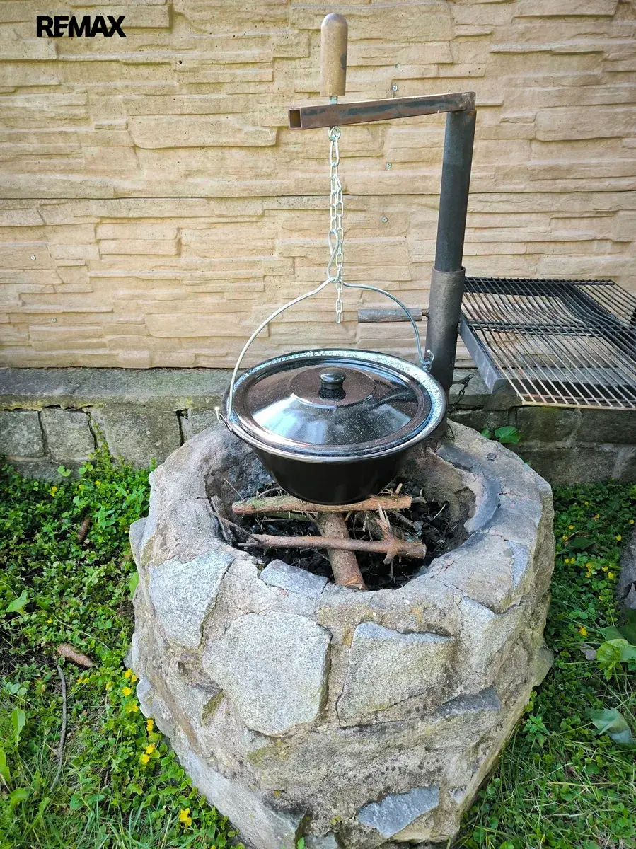 K penzionu náleží zahrada s venkovním posezení, gril, ohniště, dětské hřiště, parkování na pozemku.