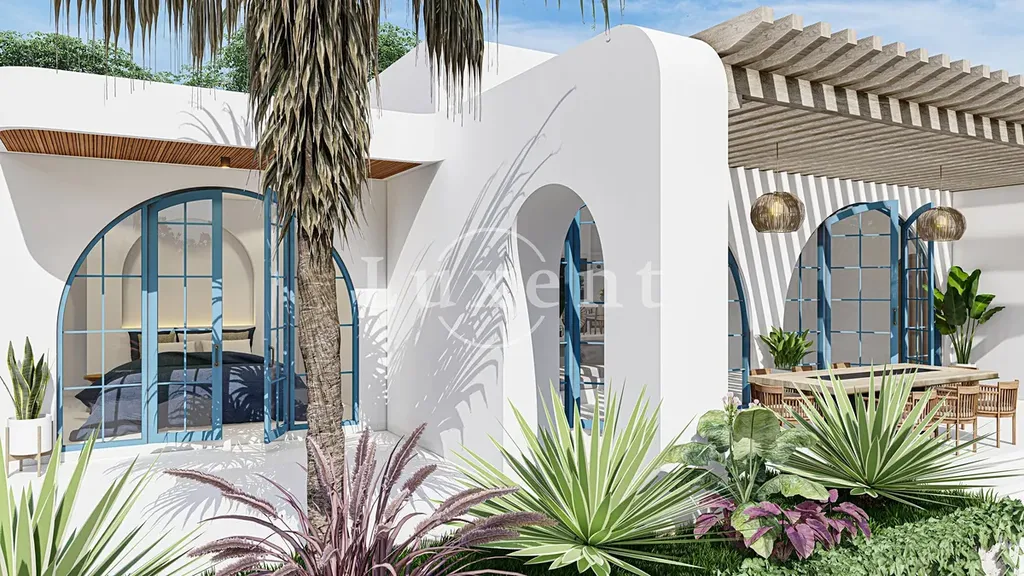 Vila o celkové podlahové ploše 152 m² na pozemku 800 m² disponuje prostorným obývacím pokojem s kuchyňským koutem, dvěma ložnicemi, lodžií a prostornou terasou s velkým soukromým bazénem.