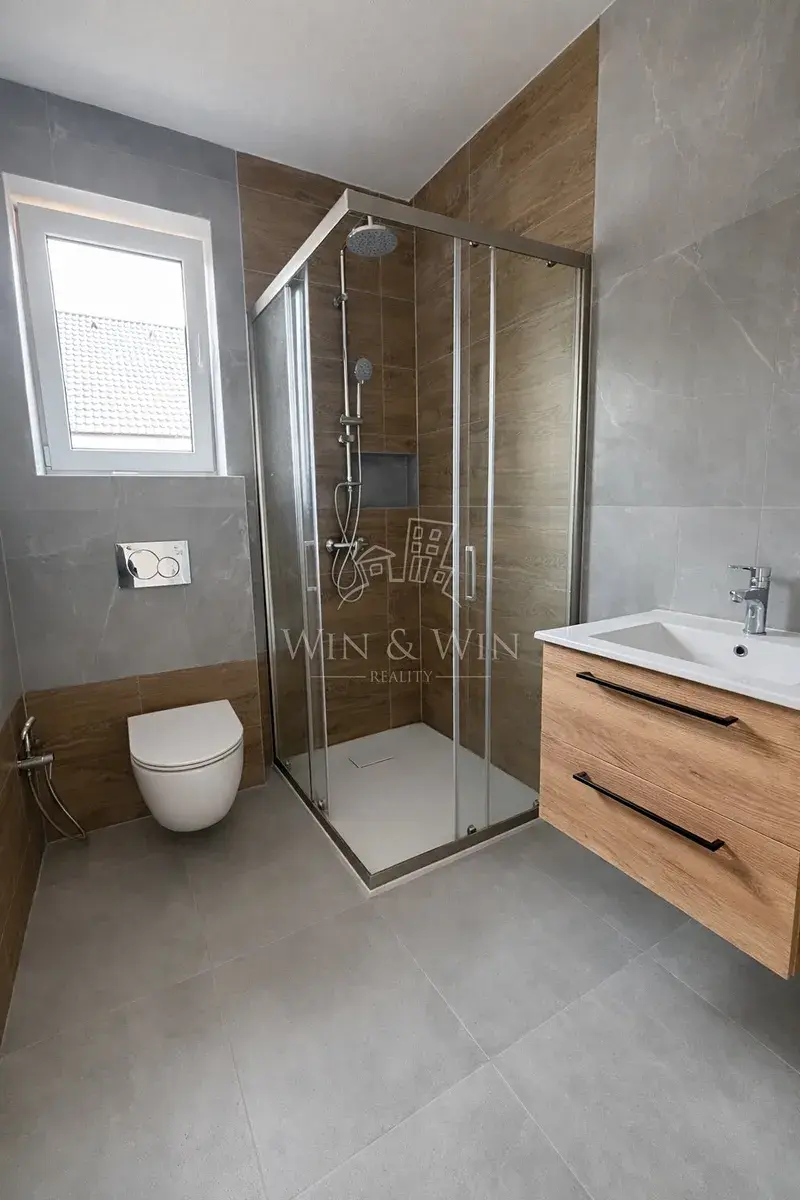 Interiér domu je navržen s důrazem na vzdušnost, praktičnost a každodenní komfort. Dominantou je světlý obývací pokoj s prostorem pro kuchyňský kout, kde je připravena kompletní instalace pro budoucí kuchyňskou linku dle vlastních představ nového majitele. Kuchyňská linka není součástí ceny, což Vám dává jedinečnou možnost navrhnout si ji přesně podle vlastního stylu a potřeb. Tento prostor plynule navazuje na zahradu. Velkým benefitem je bioklimatická pergola značky Rojaplast, která je již zahrnuta v ceně domu – ideální místo pro celoroční posezení, rodinné večeře i relaxaci za každého počasí. Právě zde vzniká přirozené centrum domova.