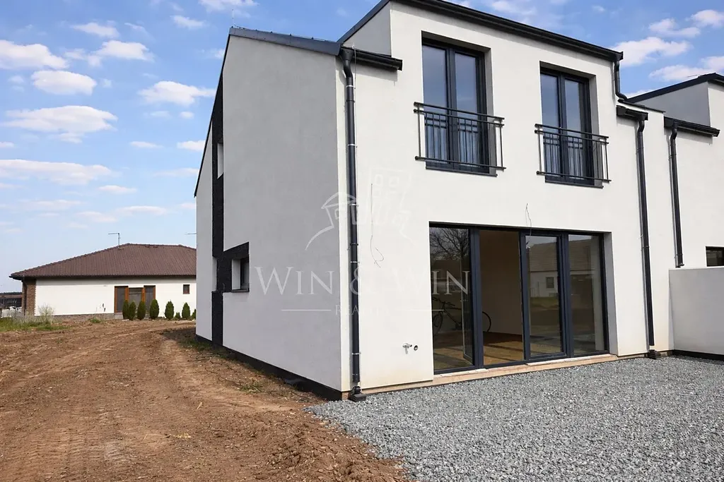 Zahrada je prakticky řešená, snadno udržovatelná a plně funkční. Díky orientaci od jihovýchodu na jihozápad si zde užijete slunce po celý den. Nabízí prostor pro relax, dětské hry i posezení s přáteli. Součástí je také zakopaná betonová retenční nádrž na dešťovou vodu. Pozemek bude kompletně upraven, zatravněn a oplocen, přičemž přední část bude řešena moderním gabionovým plotem, který esteticky ladí s celkovým stylem domu.