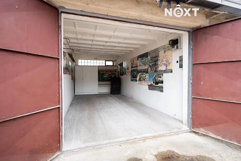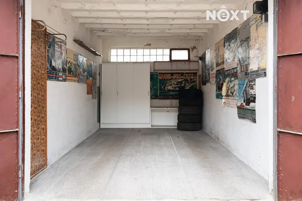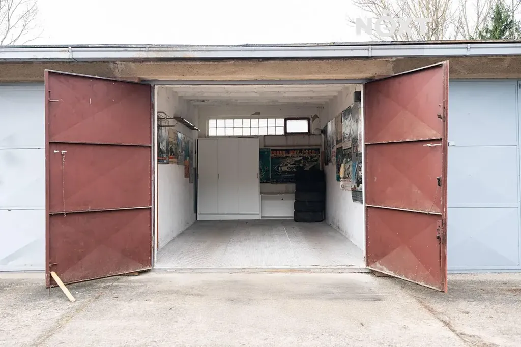 Co se týče technického stavu, garáž je v původním, ale udržovaném stavu – nezatéká a je vybavena ručním zamykáním (petlice + 2 zámky). K dispozici jsou vyklápěcí okna pro přirozené větrání. Elektřina je do garáže zavedena (včetně samostatného elektroměru a 3fázové přípojky), aktuálně však není aktivně využívána. Osvětlení je umístěno před garáží, což zajišťuje komfort i ve večerních hodinách.
