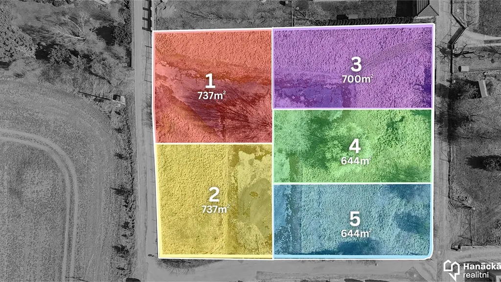Jedná se o pozemek s výměrou 644 m2 v ulici Třešňová, na snímku označena jako parcela č. 3, kdy průčelí budoucího domu bude orientováno jihovýchodním směrem. Parcela má obdélníkový tvar s šířkou 17 metrů.