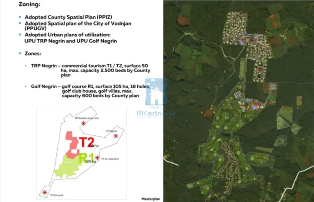 Golf Negrin. golfové hřiště R1, plocha 105ha, 18 jamek, golfový klub, golfové vily, max. kapacita 600 lůžek dle krajského plánu.