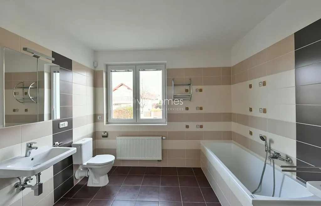 Pronájem samostatně stojícího rodinného domu v krásném přírodním prostředí obce Průhonice, v okrese Praha - západ. Genius loci místa tvoří zámek s půvabným rozlehlým parkem s nádhernou botanickou zahradou, který patří do seznamu chráněných památek UNESCO. Množství hotelů a restaurací, včetně malého pivovaru, dodávají obci hlavně v letních měsících své kouzlo. Asi ve vzdálenosti 1000 m od obce najdete velké nákupní centrum a rozlehlý „vodní park" , který ocení hlavně děti. V obci je také škola a školka pro děti, pro anglicky mluvící děti je mezinárodní anglická škola a školka na Praze 4, vzdálená 20 minut autem.