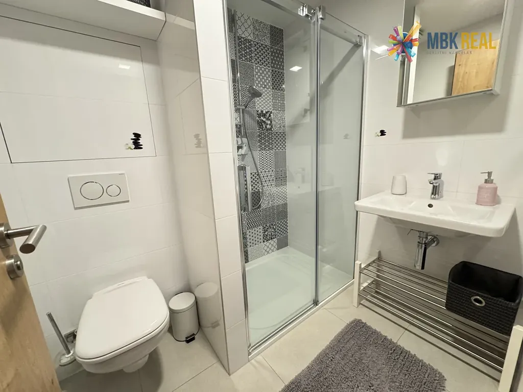 K apartmánu je k dispozici uzamykatelná kóje umístěna v přízemí domu, určena pro kola, lyže nebo kočárek. Vyhrazené parkování přímo před objektem s dálkově ovládanou závorou je součástí této nemovitosti. Vytápění místností zajišťují přímotopy s termostaty, které je možné ovládat dálkově pomocí mobilní aplikace, v koupelnách jsou žebřinová topení. Ohřev vody je zajištěn dostatečně velkým elektrickým bojlerem.