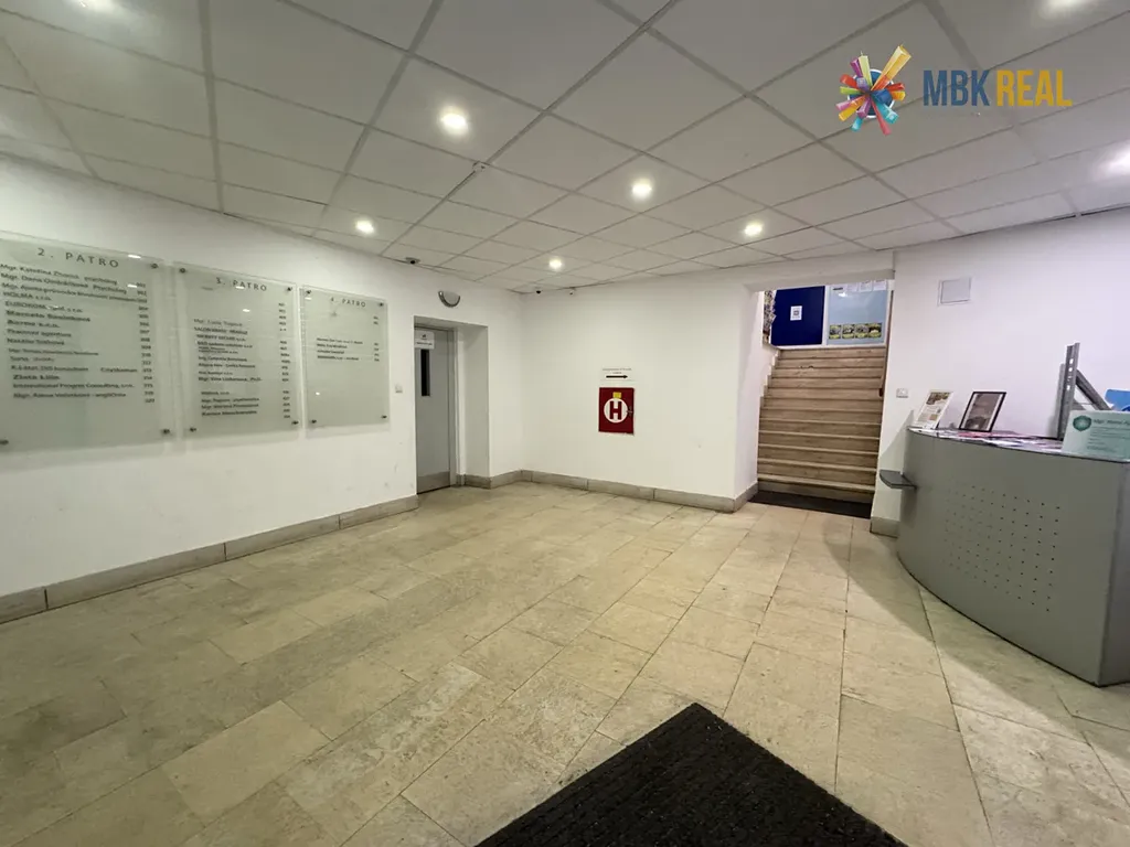 Vstup do budovy s výtahem je neomezený 24/7, vstupní hala je vybavena orientační tabulí a schránkami pro nájemce.