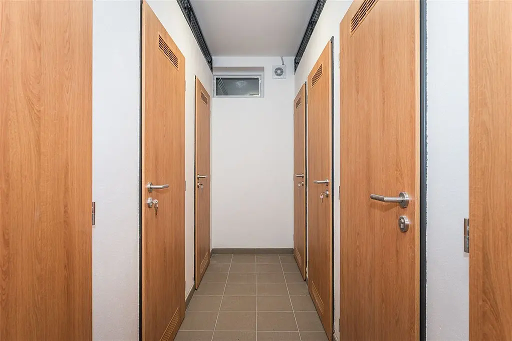 ___ Tento moderní byt s celkovou plochou 97,9 m², označený kódem 2.11, je umístěn ve 2. NP, s okny orientovanými většinou k jihu. Z rozlehlé předsíně (16,8 m²) vedou dveře do šesti místností, svoje místo zde má i šatna (2,5 m²). Prostornost obývacího pokoje s kuchyňským koutem (26,5 m²) zvyšují navíc prosklené francouzské dveře, vedoucí do lodžie (7,5 m²) i další okno, směřující k jihu. Ložnice (14,0 m²) i další pokoj (11,7 m²) jsou prosvětleny velkými okny. Koupelna s vanou i sprchou (6,6 m²) a samostatné WC s umývátkem (2,2 m²).