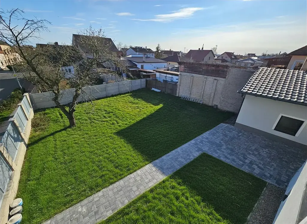 Na pozemek o travnaté ploše cca 300 m2 vede pohodlný vjezd z ulice s přípravou na elektrické ovládání vrat a nachází se zde také výminek (cca 30 m2) po celkové rekonstrukci se zavedenou elektřinou, vodou i odpadem, který je možné využít i jako dílnu, kancelář nebo třeba letní kuchyni.