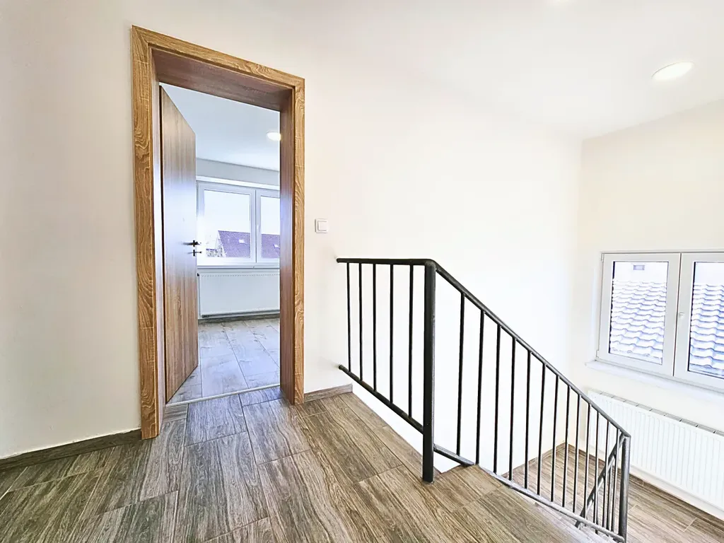 Dům prošel kompletní rekonstrukcí a poskytuje pohodlné bydlení pro rodinu o dispozici 4+1 se dvěmi koupelnami. V prvním nadzemním podlaží se nachází vstupní hala, kuchyně, koupelna se sprchovým koutem a velkorysý obývací pokoj o ploše cca 33 m2 s přípravou na krbová kamna. Ve druhém nadzemním podlaží se nachází celkem 3 ložnice a koupelna s vanou. Dům je částečně podsklepen (20 m2), přičemž i vytápěný sklepní prostor prošel nákladnou rekonstrukcí.