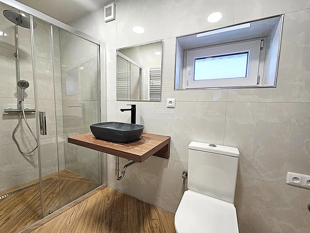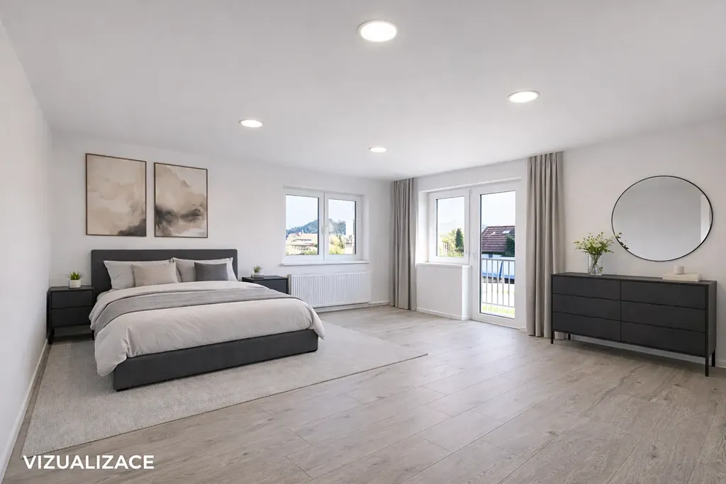 Kompletní rekonstrukce, která probíhala během loňského a letošního roku zahrnuje veškeré rozvody, nové topení s elektrokotlem umístěným ve sklepě, nová střecha, výměna oken, interiérových i venkovních dveří, elektroinstalace, štuky, malby, sádrokartonové podhledy s bodovými světly, nové koupelny, podlahy (vinyl + dlažba), vyvložkování komína a úpravu pozemku včetně plotu.