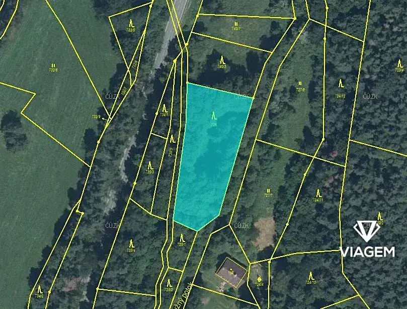 Tento pozemek je zapsán na LV 425 s parcelním číslem 726.