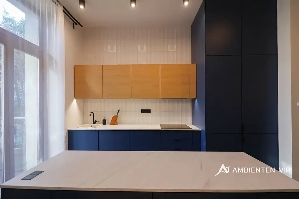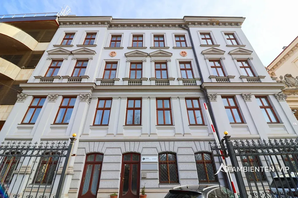 Byt o celkové podlahové ploše 143,49 m² se nachází v 2. nadzemním podlaží a nabízí velmi prostorné místnosti s vysokými stropy, které dodávají interiéru vzdušnost a reprezentativní charakter. Celý prostor zároveň nese jedinečný genius loci tohoto domu. Prostory bytu jsou kompletně zařízené a připravené k okamžitému nastěhování.