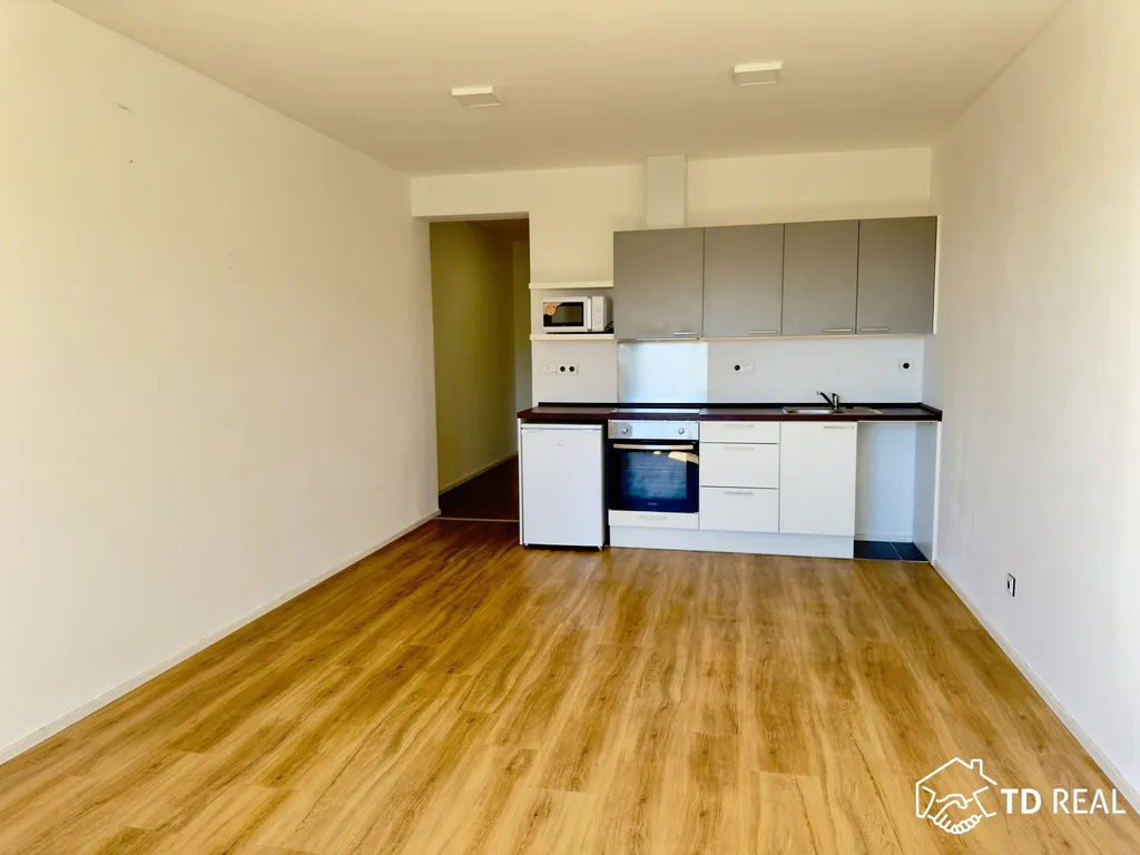 Dispozice: vstupní chodba, koupelna se sprchovým koutem, toaleta zvlášť. Obývací pokoj s kuchyňským koutem, kuchyně je vybavena spotřebiči: varnou deskou, odsavačem par, horkovzdušnou troubou.