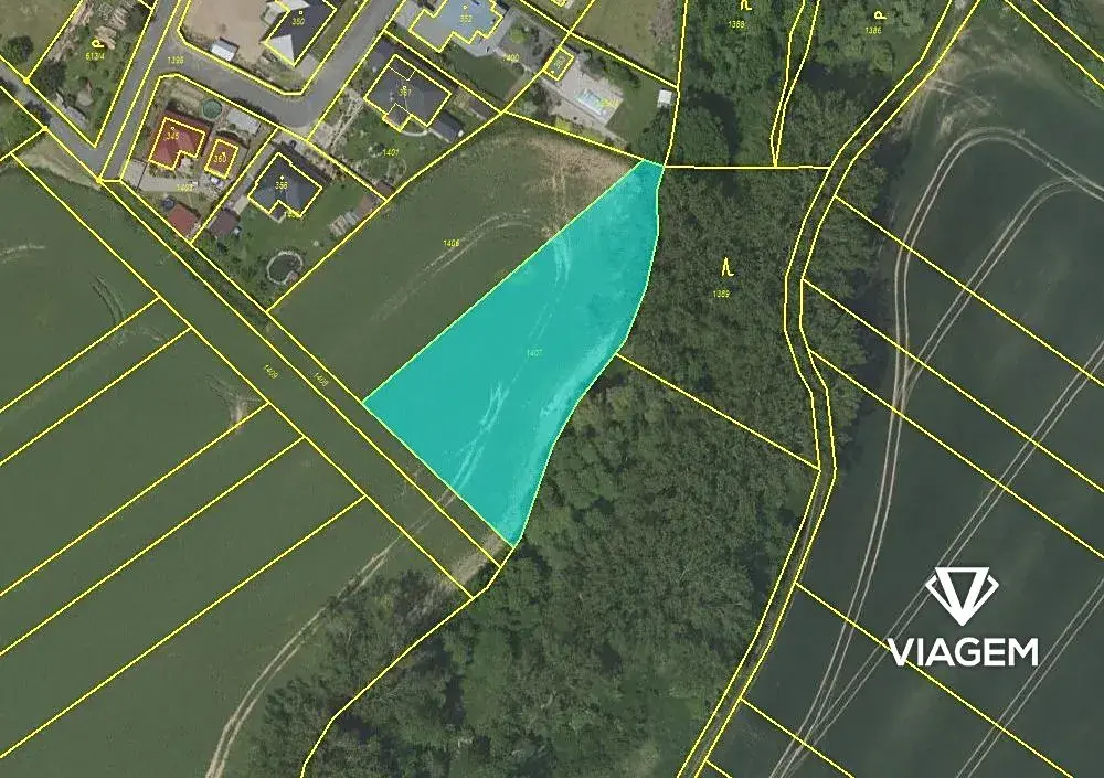 Tento pozemek je zapsán na LV 818 s parcelním číslem 1407 o celkové výměře 129 m².