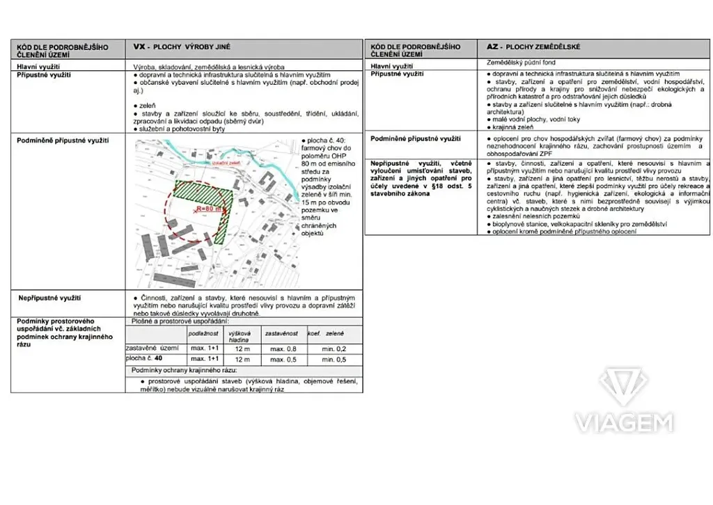 Možnosti využití pozemku jsou dle územního plánu pro výrobní a skladovací plochy či jiné komerční účely. Parcela nabízí příležitost ideálního místa pro budoucí firemní zázemí. Přístup k pozemku je zajištěn přímo z hlavní silnice.