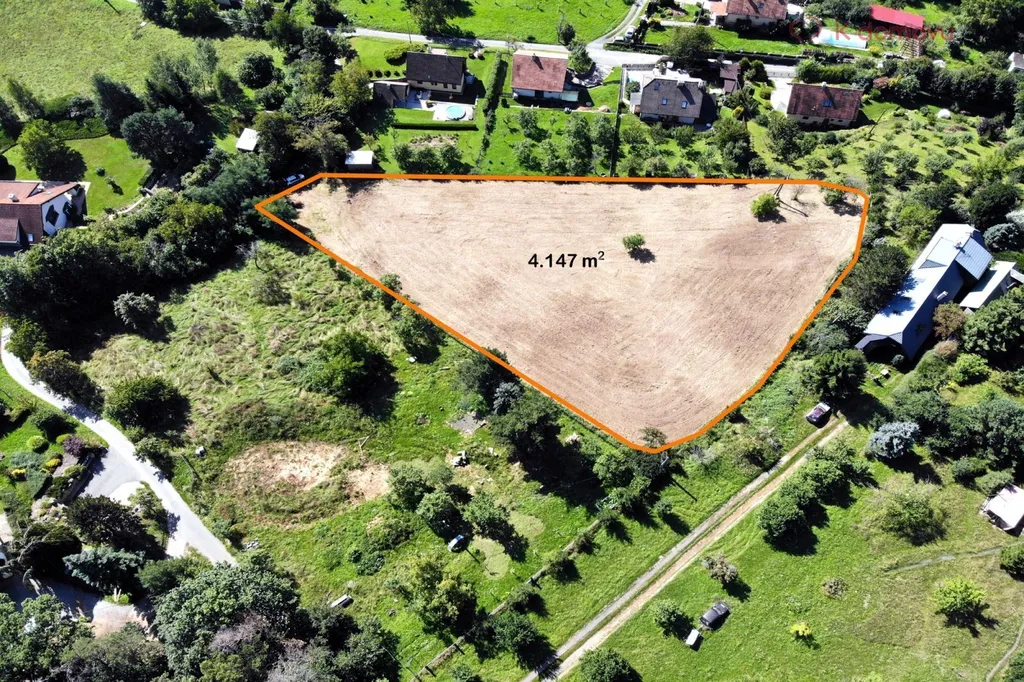 Soubor všech nabízených pozemků dává celek o velikosti 4.147m2 a dle současného platného ÚP je vymezeno k zastavění 1.200 - 1.500 m2.