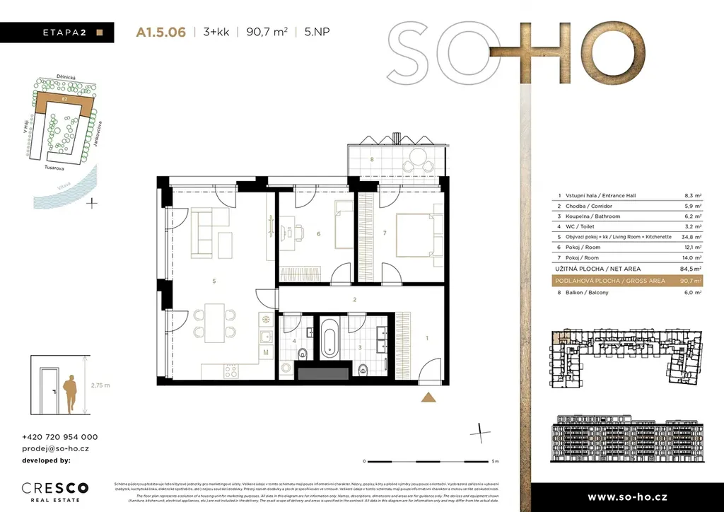 Více informací o tomto bytě, projektu a aktuální nabídce bytů z 2. etapy najdete na webových stránkách projektu. Rádi vás přivítáme také v našem prodejním centru: