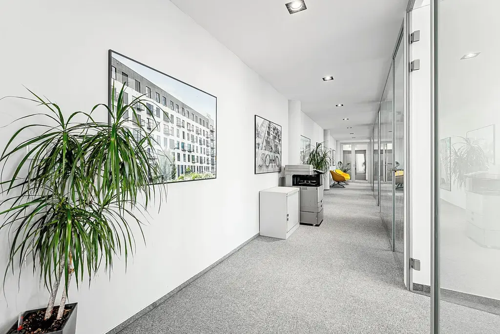 Prostory mají efektivní dispozici se stávajícím fit-outem, která kombinuje open space a samostatné kanceláře, což umožňuje flexibilní využití pro různé typy firem. Díky orientaci na sever, východ a jih je zajištěn dostatek denního světla po celý den. K jednotce náleží až 10 parkovacích stání v podzemní garáži. Prostory jsou k dispozici od 1. 1. 2027.
