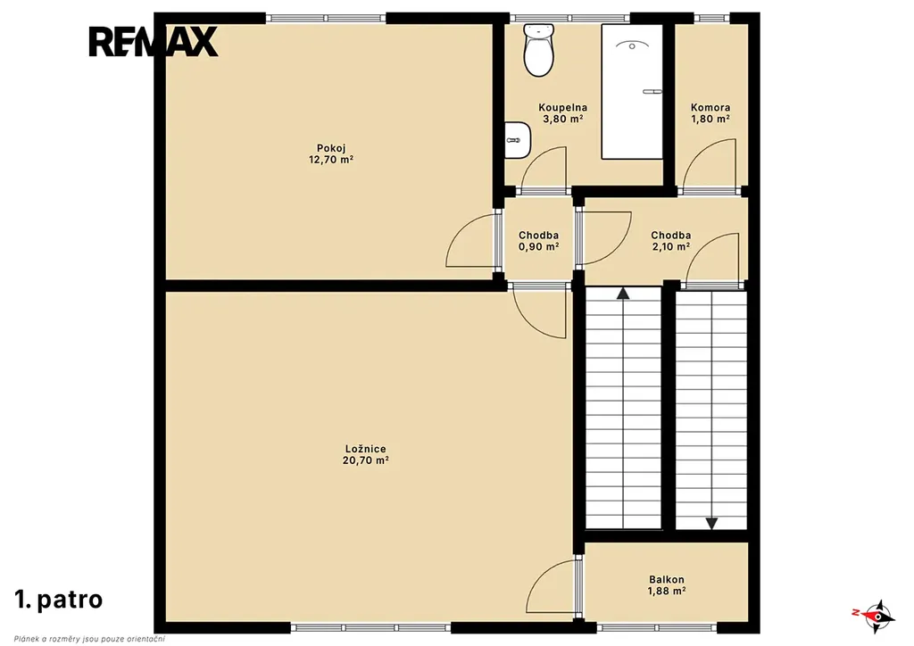 Dům má současnou dispozici 4+kk s půdou a nabízí velmi zajímavý potenciál budoucího využití. Obytná plocha může po úpravách činit až 148 m². V přízemí se nachází plocha 50 m², v prvním patře 44 m² a půda o velikosti 54 m² nabízí další prostor pro rozšíření obytné části. Součástí domu je také sklep o výměře 22 m², který poskytuje praktické zázemí pro skladování, technické zázemí nebo dílnu.