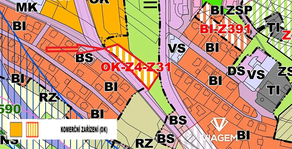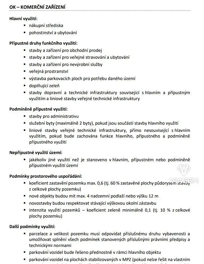 Pozemek je vhodný pro výstavbu nákupních středisek nebo pohostinství a ubytování, což nabízí široké možnosti pro podnikání i rozvoj v oblasti obchodu a služeb.