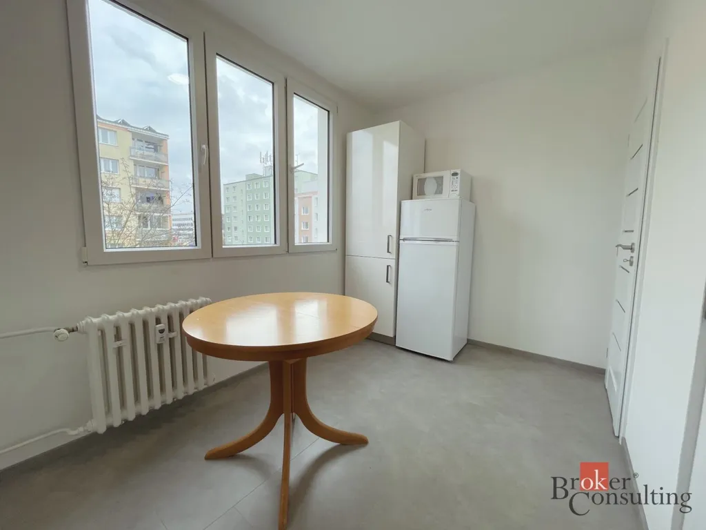 Na pronájem právě zrekonstruovaný byt o dispozici 2+1 ve 4. patře panelového domu v klidné lokalitě Plzeň - Lobzy. Byt disponuje prostorným obývacím pokojem, samostatnou ložnicí, moderní kuchyňskou linkou, dále koupelnou se sprchovým koutem a oddělenou toaletou. Velkou výhodou je také samostatná místnost v předsíni, kterou lze využít jako technickou místnost. Byt je po rekonstrukci a dosud v něm nikdo nebydlel.