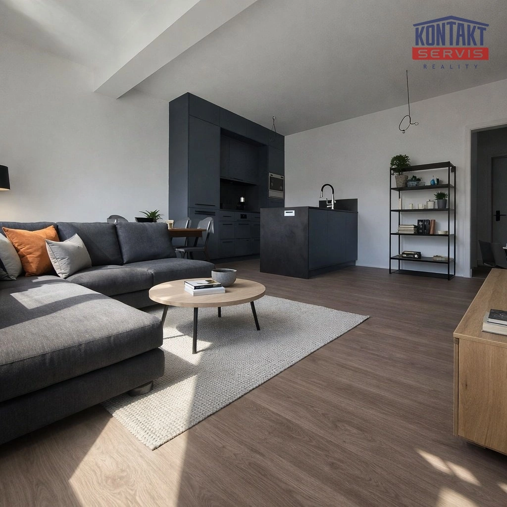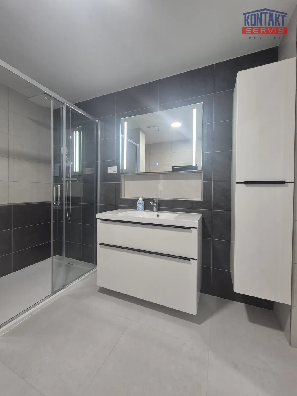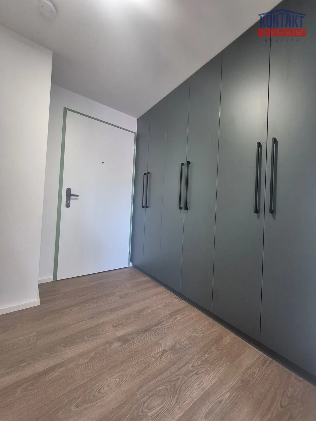Interiér bytu působí velmi světlým a vzdušným dojmem a je navržen tak, aby poskytoval praktické a pohodlné bydlení. Srdcem bytu je luxusní kuchyňská linka s dostatkem úložného prostoru, která je součástí prostorného obývacího pokoje s kuchyňským koutem. Z obývacího pokoje se vstupuje na balkon s příjemnou západní orientací, ideální pro večerní posezení. Ložnice je vybavena postelí a prostornou vestavěnou šatnou. V předsíni pak naleznete moderní vestavěnou skříň. Koupelna je řešena se sprchovým koutem a WC.