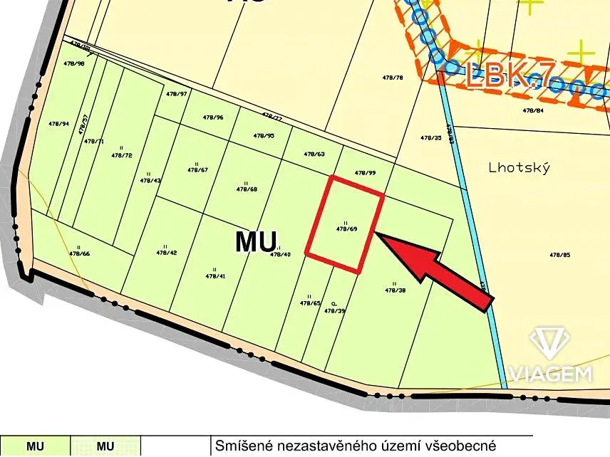 Tento pozemek je zapsán na LV 151 s parcelním číslem 478/69 o celkové výměře 1056 m².