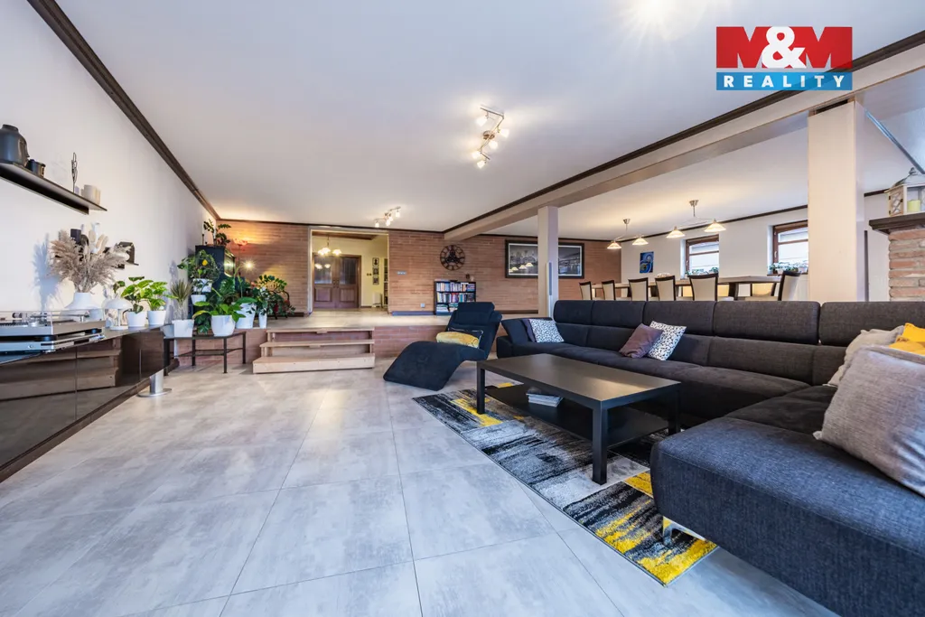 Nabízíme k prodeji ojedinělý komplex prostorného rodinného domu určený pro vícegenerační bydlení v klidné části velmi vyhledávané obce, s obrovským pozemkem, na kterém se nachází i prostorná hala určená k podnikání (nyní zavedená truhlárna) a za potokem ještě oplocený pozemek uzpůsobený pro chov drůbeže. Samostatně stojící dům nabízí celkem 3 bytové jednotky ve 2 nadzemních podlažích. V přízemí najdeme menší byt 2+kk a velký byt 3+1 s rozlehlým obývacím pokojem s barovým koutem a jídelnou v přístavbě, odkud se vychází na přilehlou terasu v zahradě s bazénem. V patře je dispozice dalšího bytu 4+1. Celková užitná plocha rodinného domu činí 486 m², nabízí 10 místností včetně 3 kuchyní, 3 koupelen, předsíní a balkonů. Na rozlehlém pozemku 2 424 m² je kromě bazénu i okrasné jezírko s rybami, rozestavěná sauna, posezení pod pergolou a hala se sociálním zázemím o ploše 317 m2. Pokud máte větší rodinu nebo sháníte kombinaci bydlení a podnikání s dostatkem soukromí, zavolejte si o prohlídku!