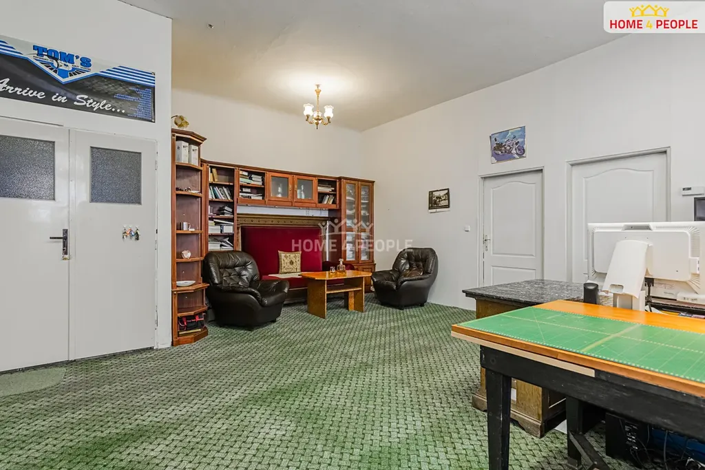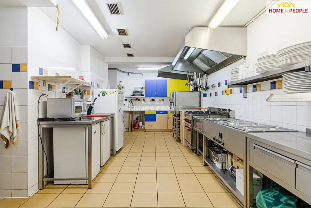 Přízemí tvoří kompletně vybavená restaurace s kapacitou 100 míst. Dalších 30 míst je na zastřešené zahrádce. Součástí je výčep, sociální zázemí a navazující gastro kuchyně. Kuchyně je připravená k provozu, přehledná, účelně řešená a vybavená vším potřebným. Zázemí doplňuje sklad, technická místnost, garáž s vjezdem ze dvora, která je průchozí do přízemí domu a parkoviště pro 18 vozidel.
