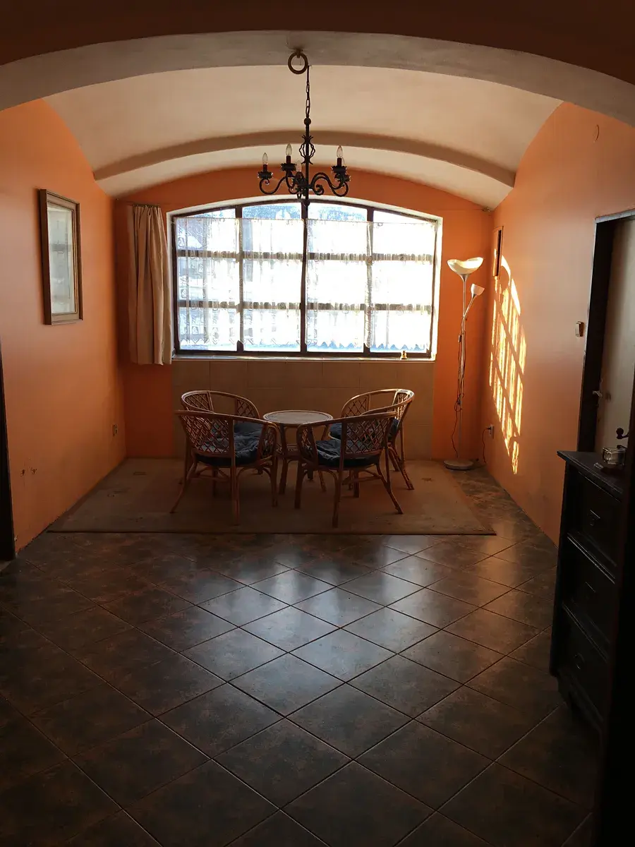 Nabízíme ke koupi venkovský dům pro bydlení i rekreaci, který byl postaven, jako původní zájezdní hostinec pro ubytování. Budova není památkově chráněna ačkoli historie domu sahá až ke konci 19. století. jedná se o samostatný nepodsklepený dům o dispozici 7+2, obytná plocha domu je 202 m2. Konstrukce domu je kamenná (opuka) se sedlovou střechou. Stropy klenbové a trámové. Dům byl částečně upravován od roku 2000 a v současné době je obývaný. Nutná rekonstrukce střechy s možností půdní vestavby. Součástí pozemku je udržovaný dvůr s drobnými stavbami (pergola, rezervoár na vodu, montovaná plechová garáž se zavedenou elektřinou). Dveře a okna jsou repasované nebo nově vyrobené. Vytápění je lokální na dřevo. Inženýrské sítě, voda, elektřina a plyn. Kanalizace vlastní jímka. V obci je připravená výstavba veřejné kanalizace. Občanská vybavenost je prodejna, mateřská školka, sportoviště. Dopravní dostupnost je 2 km od sjezdu na D7 (Praha Chomutov). Prostorný dům s možností využití jako vícegenerační nebo pro ubytování v samostatných bytových jednotkách. Klidné centrum menší obce v blízkosti sportovního letiště Panenský Týnec.